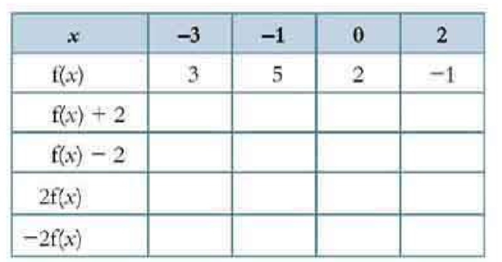Using The Graph Of The Function F X And The Table Of Values Give The Table Of Values The Transformation Of Each Funct Homeworklib